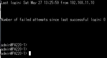 では続いて色々Pingを打ってみようと思います。 先程同様にSSHでPA-220に入ります。 |