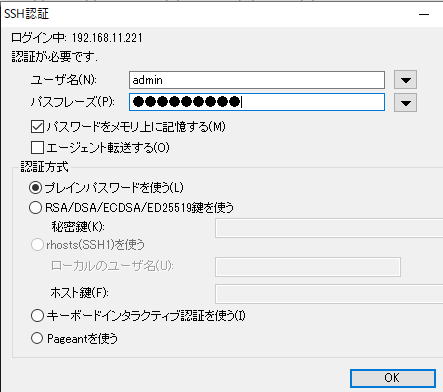 ということで、ここまで実施した設定により、FAT-PCからSSHやHTTPSで管理アクセスができるようになっているはず。ということではまずはSSHで接続してみます。 Teratermを起動し、ホスト名にMGTポートのIPアドレスを入力。 ![]() ログインIDとPWを入力し・・・ ![]() 無事ログインできました。 ![]() |