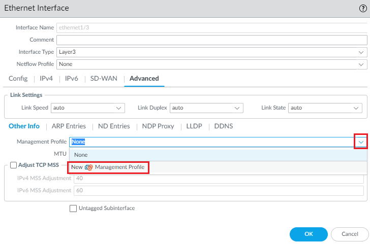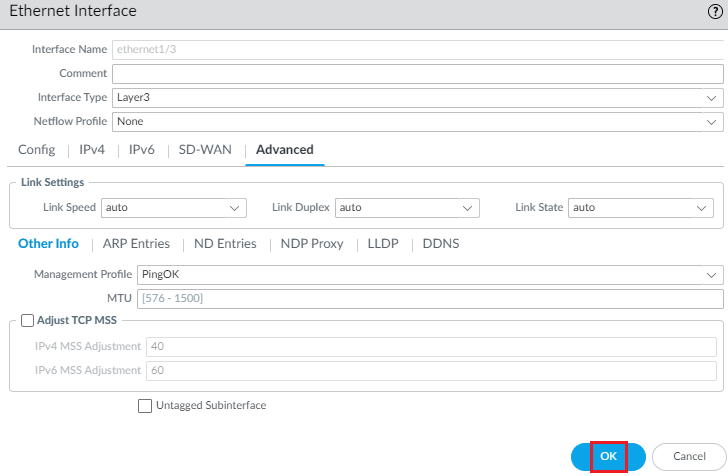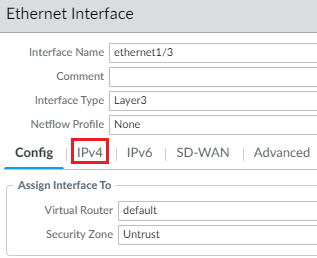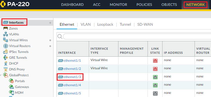 「NETWORK」→「Interfaces」→「ethernet1/3」と進みます。