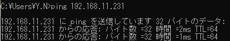 なるほど。これでじゃあFAT-PCからE1/3(192.168.11.231)にPingが飛ぶようになったのかな? お、無事飛びました。 ![]() |