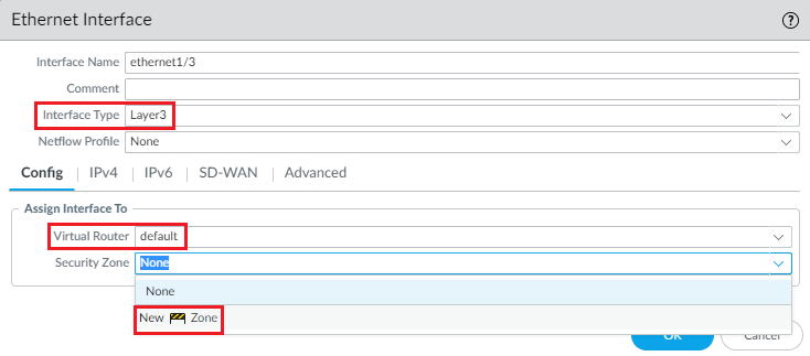 ・Security Zoneのプルダウンを押して、「New Zone」を押します。