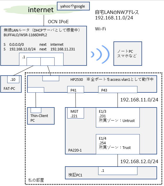 | 送信元アドレス | 192.168.12.0/24 ※検証PC1が所属しているNW |